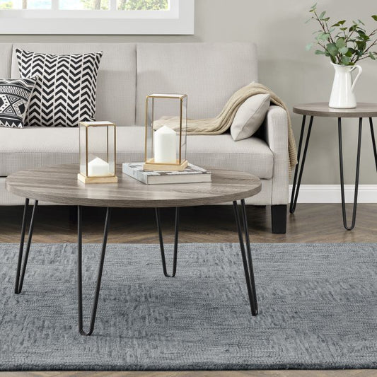 Dorel Owen Round Coffee Table - Grey Oak, Hairpin Legs