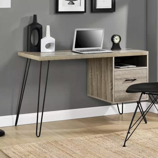 Owen Retro Home Office Desk - Rustic Oak with Hairpin Legs