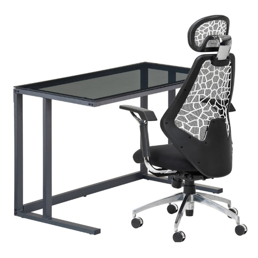 Alphason Air Desk - Smoked Glass & Grey Steel, Easy Assemble