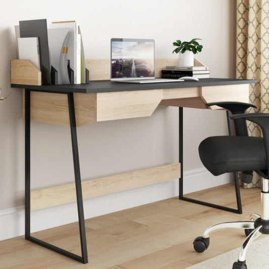 Alphason Salisbury Desk - Oak & Black with Storage Drawers