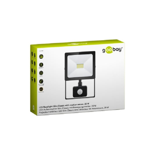 Goobay 20W LED Floodlight, Slim Classic, with Motion Sensor