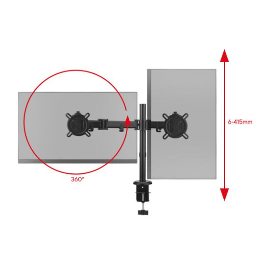 One For All Dual Monitor Arm – 13"-32", Adjustable Height, Black
