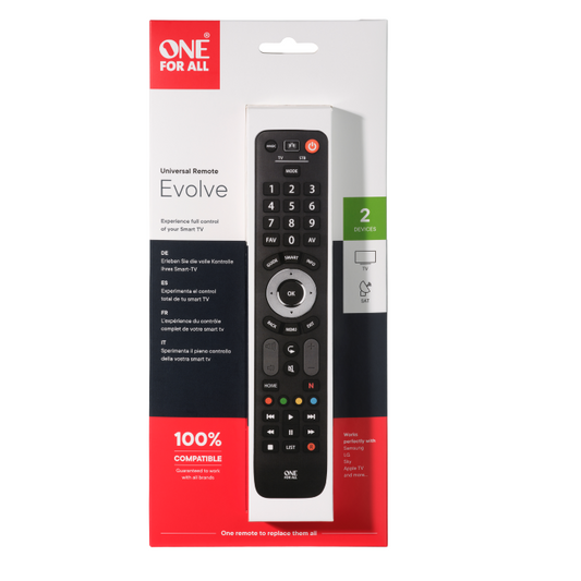 One For All Evolve 2 Devices Universal Remote Control, Smart Button